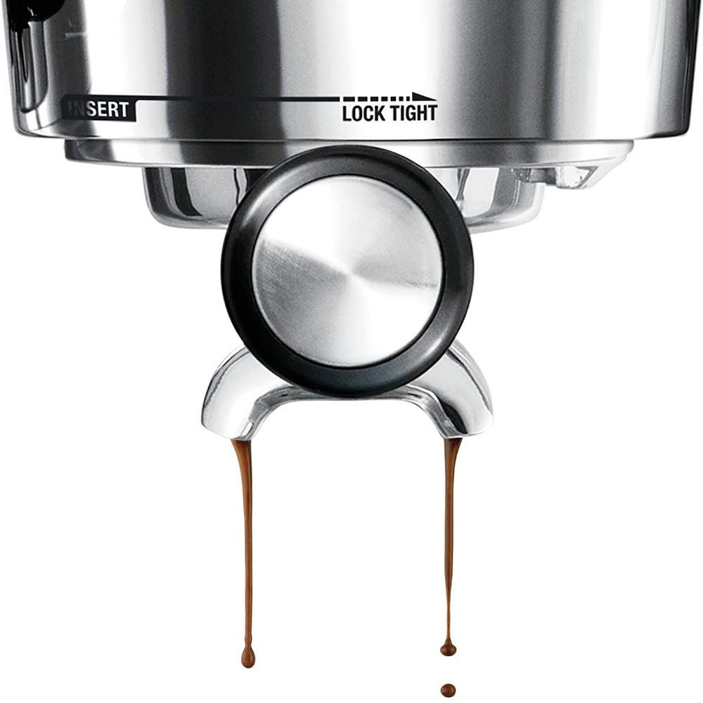 The 58-mm commercial-grade portafilter helps maintain optimal heat through extraction, and is designed with 2 recessed spouts to enable a flat base for easier, more stable tamping vs. traditional espresso portafilters.