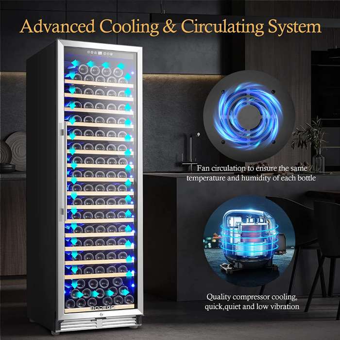 - Fan-forced circulation system that ensures even temperature distribution throughout the wine fridge.
