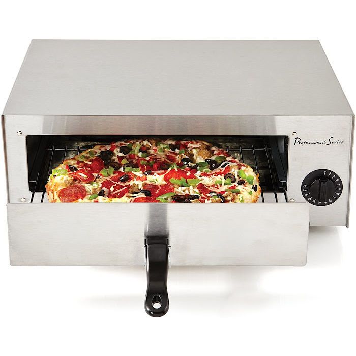 The most common type is the electric home pizza oven. Some models are gas-fired: these ovens use a gas burner to heat the enclosed chamber. Other pizza ovens also have a stone or deck that helps cook the pizza.