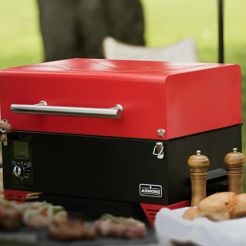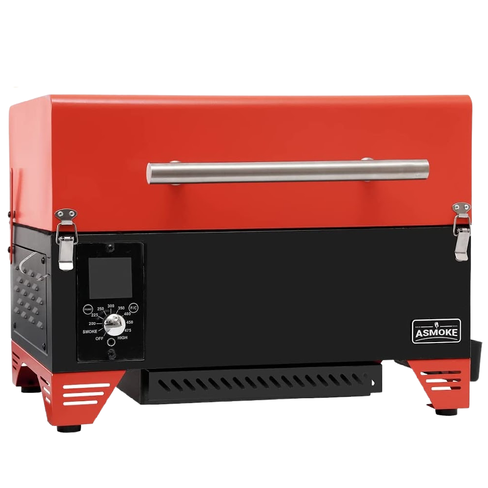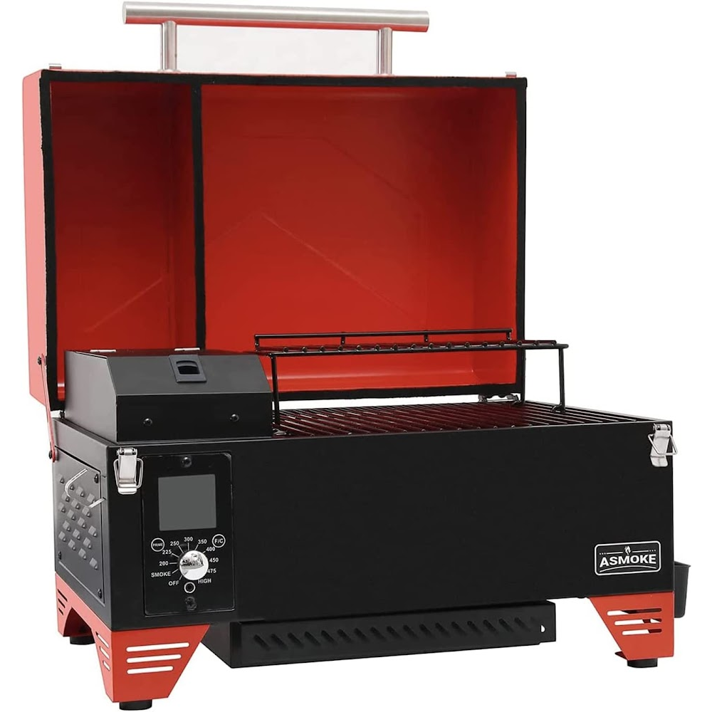 The Asmoke is a Portable Wood Pellet Grill & Smoker that can reach up to 500F degrees and sear at 450F degrees. It features precise temperature control.