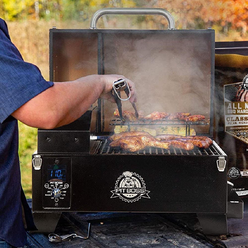 And with its simple slide-plate, you can switch between direct and indirect flame grilling with ease. Whether you're grilling up steaks, chicken, or veggies, the Pit Boss Wood Pellet Grill will help you get juicy, flavorful results every time. This is a real contestant for the title "best portable pellet grill".