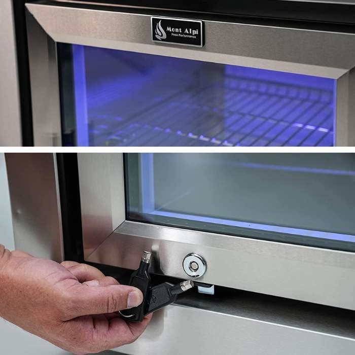 The Mont Alpi outdoor wine cooler is an excellent choice for those looking to add a modern and stylish design and functional appliance to their outdoor kitchen. This item has a strong build and useful features, is resistant to rust and corrosion, and will enhance the look of your backyard or patio.