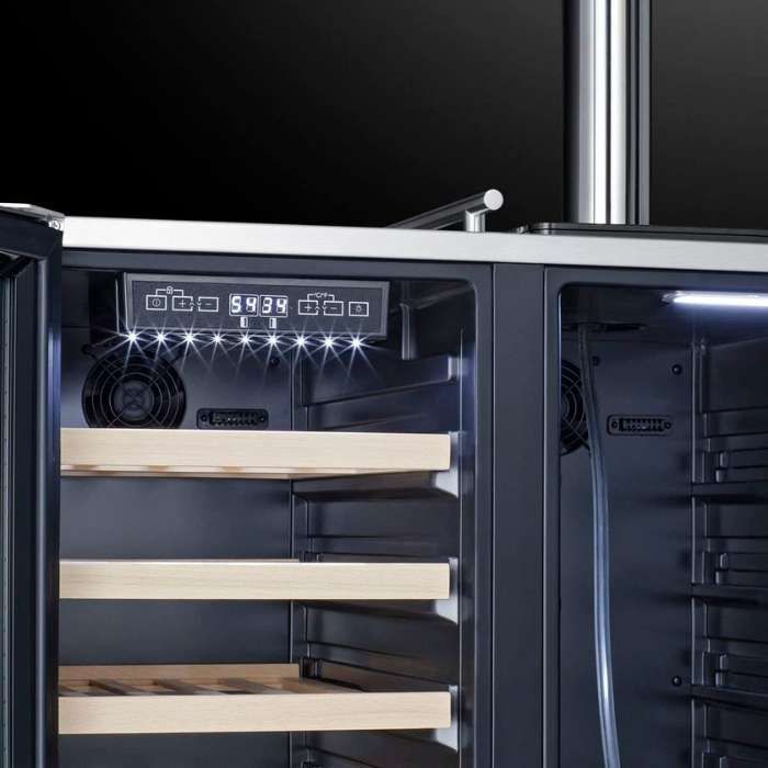 - A single compressor can efficiently cool two different temperature zones, which is perfect for preserving and displaying wine while also serving draft beer.