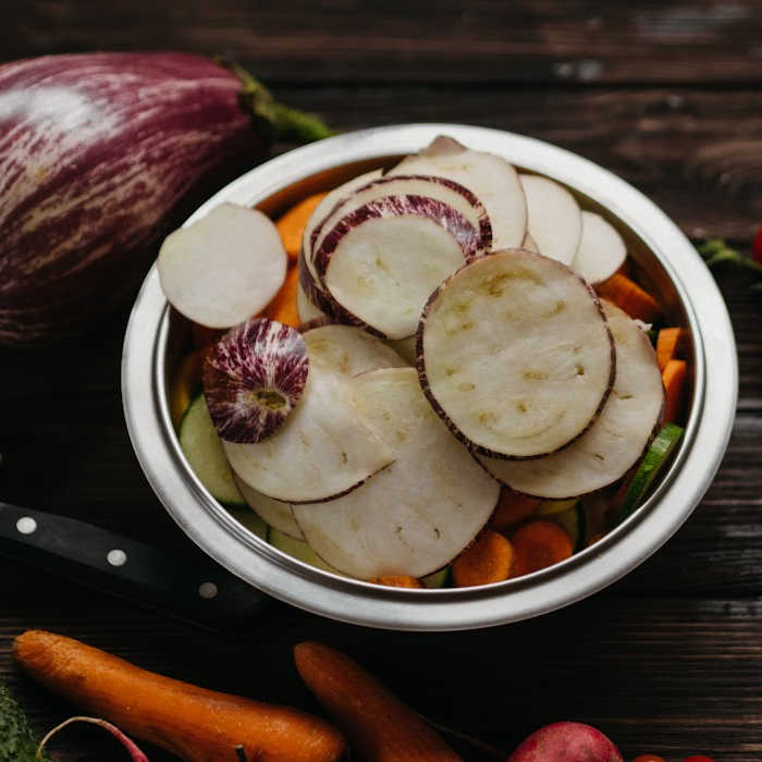 - While the air fryer is preheating, slice your zucchini into thin slices and place them in a bowl.