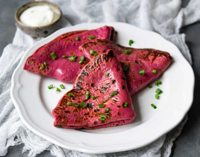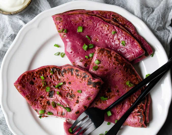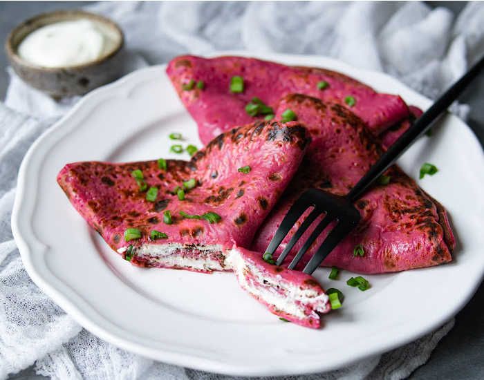 - For a vegan version of these beet pancakes or crepes, use almond milk and vegetable oil instead of cow’s milk and butter.