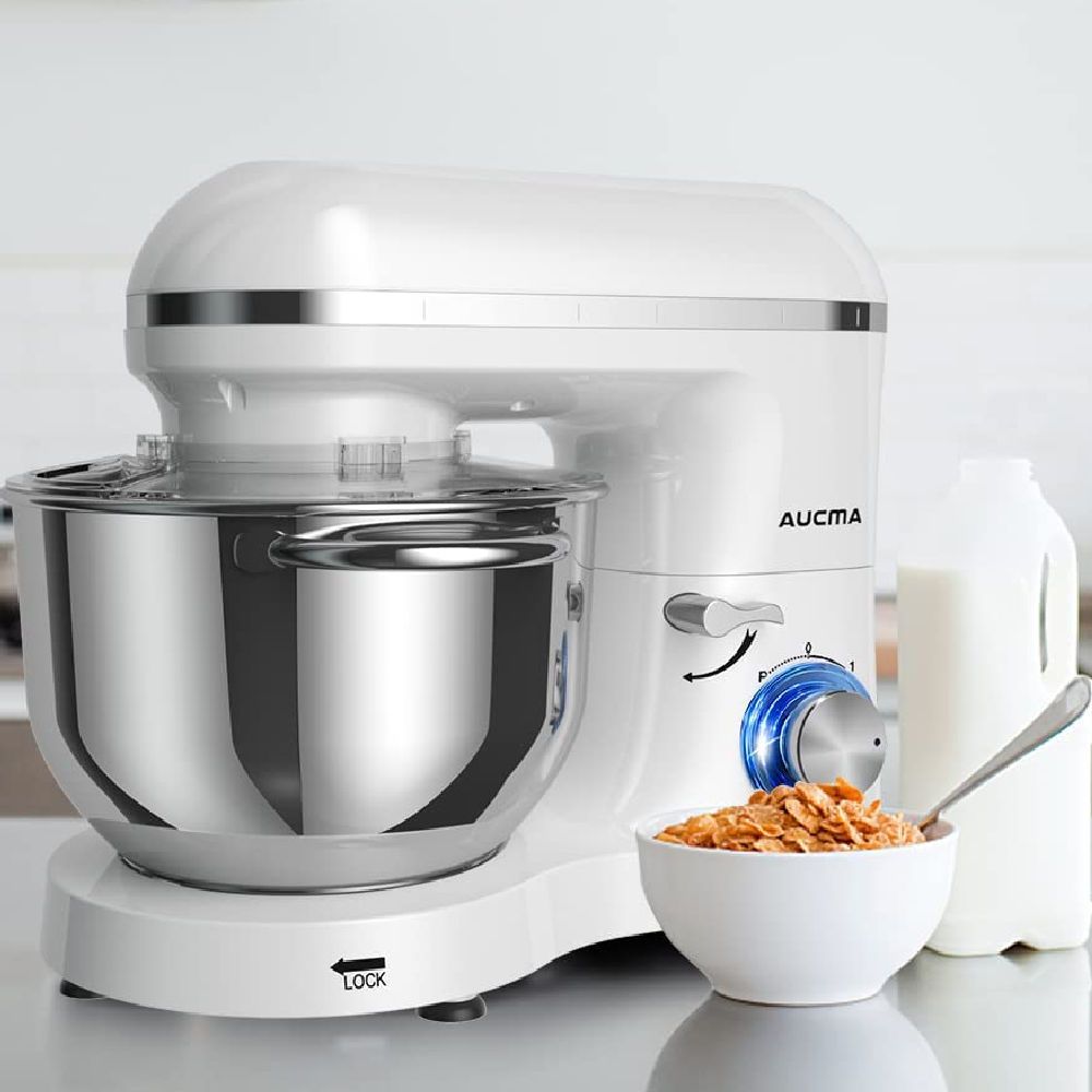 Its 6.5-quart stainless steel bowl is perfect for all your kitchen needs, from baking cakes and breads to prepare baking cookies, pastries, muffins, or waffles. The Aucma stand mixer is easy to use and comes with dual handles for extra convenience.