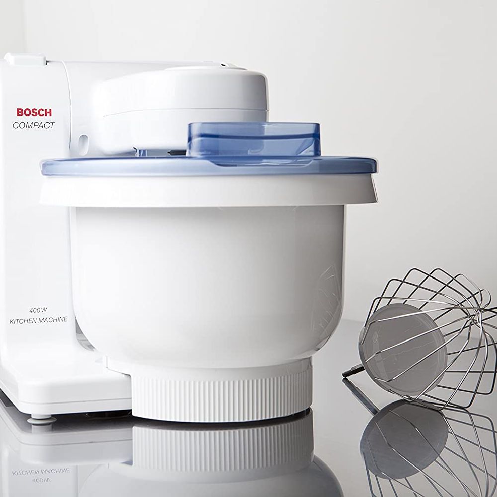 The Bosch 4 Quart Compact Tilt-Head Stand Mixer is the perfect choice for those who want a stand mixer for a small kitchen. Mixers can be bulky: not this one. This mixer is lightweight and easy to use, making it the perfect kitchen appliance for those who want to make the most of their space. It looks modest at first sight, but check out the many possibilities. In its complete form it's one of the best stand mixers in its class.