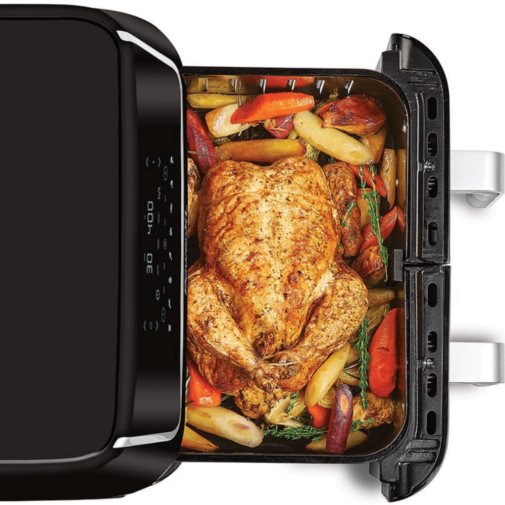 Accommodating with deep baskets rather than wide ones, this air fryer can fit more food inside. It can cook up to 8 pounds of chicken wings or 2 whole chickens with ease, making it ideal for families or large parties.