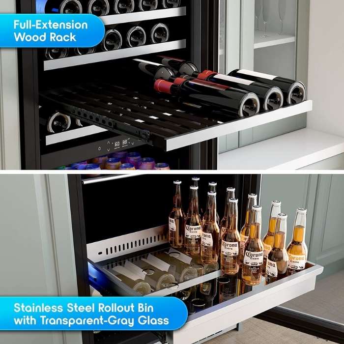 - Dual cooling zones with independent temperature controls, so you can store wines and beverages at the optimal temperature for each.