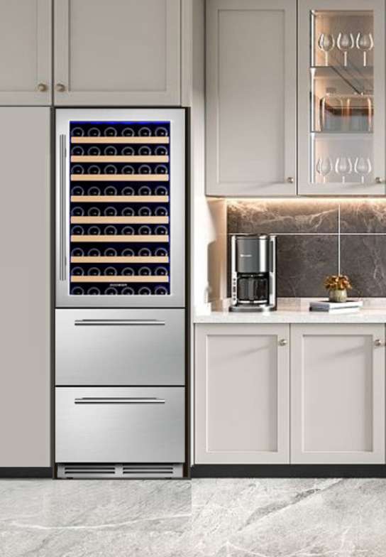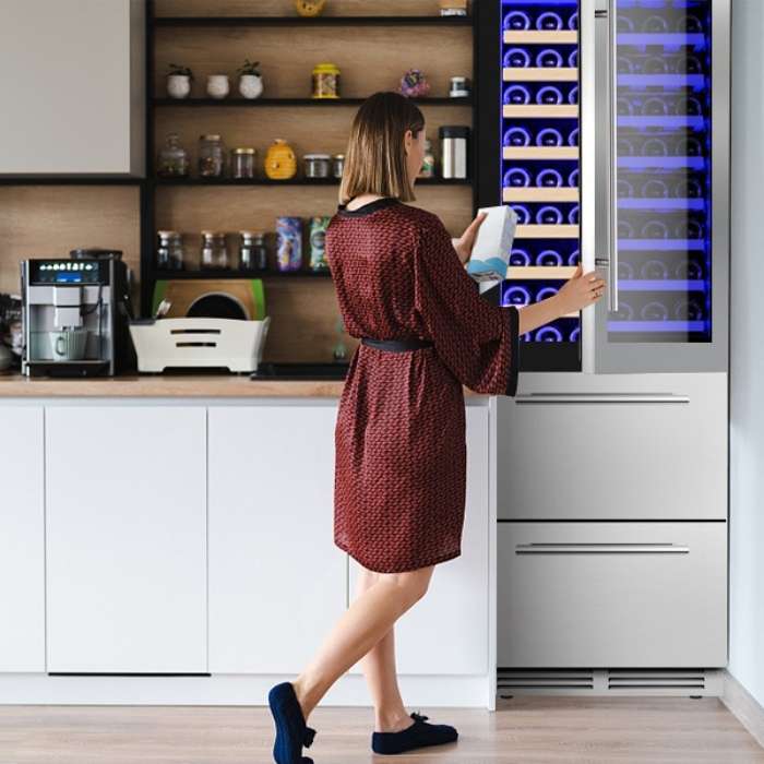 With dual zone storage, independent touch control, and built-in or freestanding installation options, it allows you to store both wine and beverages, perfectly cooled with ease.