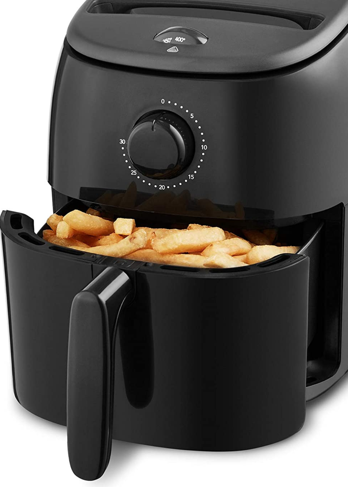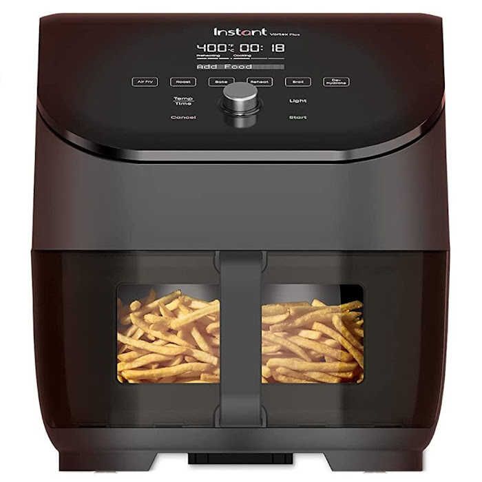 This air fryer can do it all – fry, roast, bake, and reheat your favorite foods. Perfect for large families or entertaining a small party, the Vortex Plus can cook up to 6 quarts of food at once.
