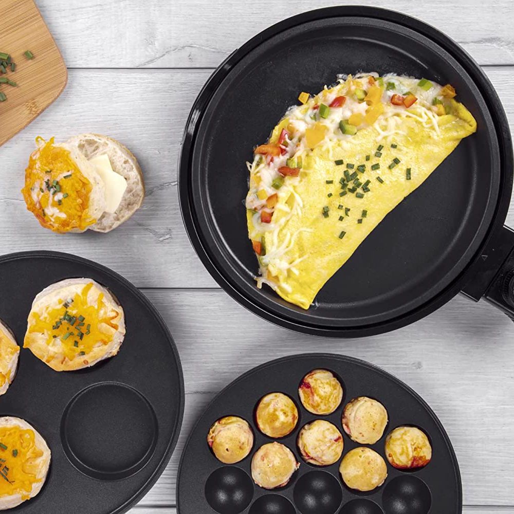 This 3-in-1 multi-function baking machine is perfect for those who want to experiment with different recipes and cooking styles. With its three interchangeable plates, you can easily switch from grilling, to making pancakes or cake pops, to making takoyaki.