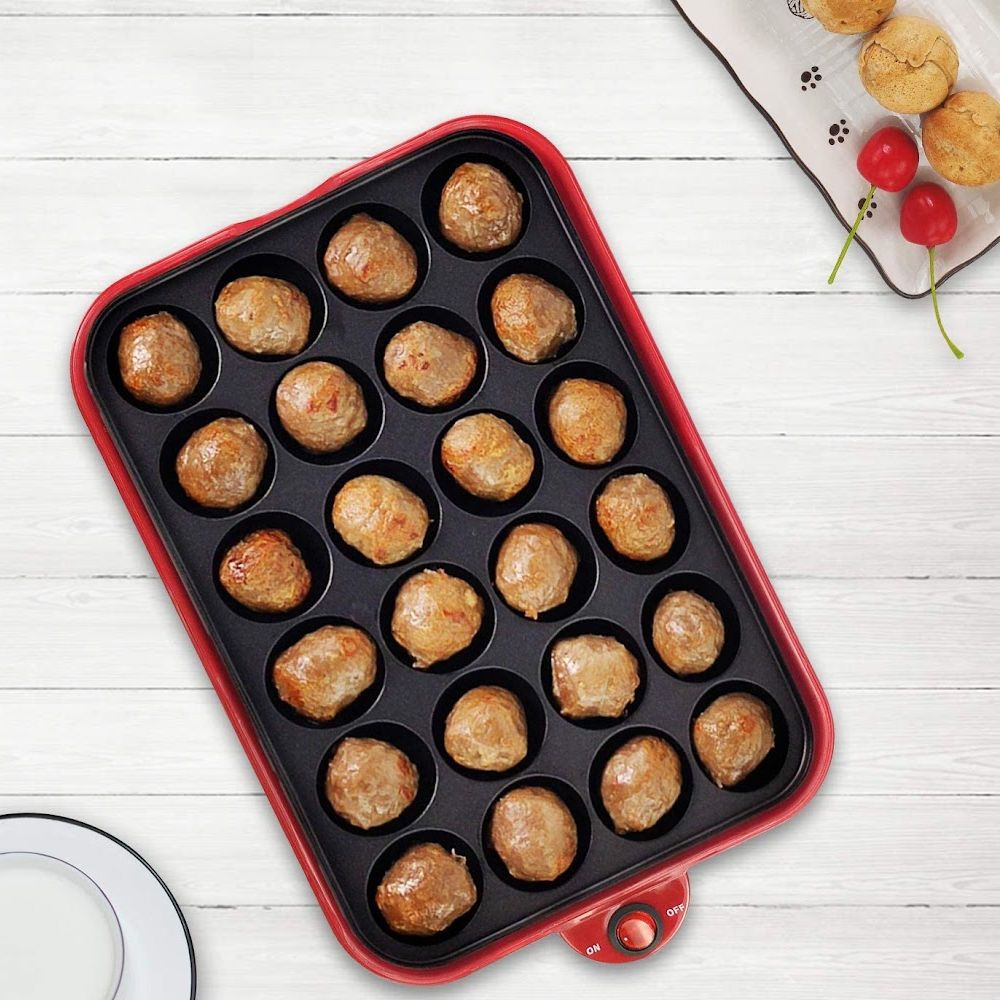 The nonstick plates make it easy to release the takoyaki balls, and the included skewers make flipping and removing them a breeze, without sticking to the surface.