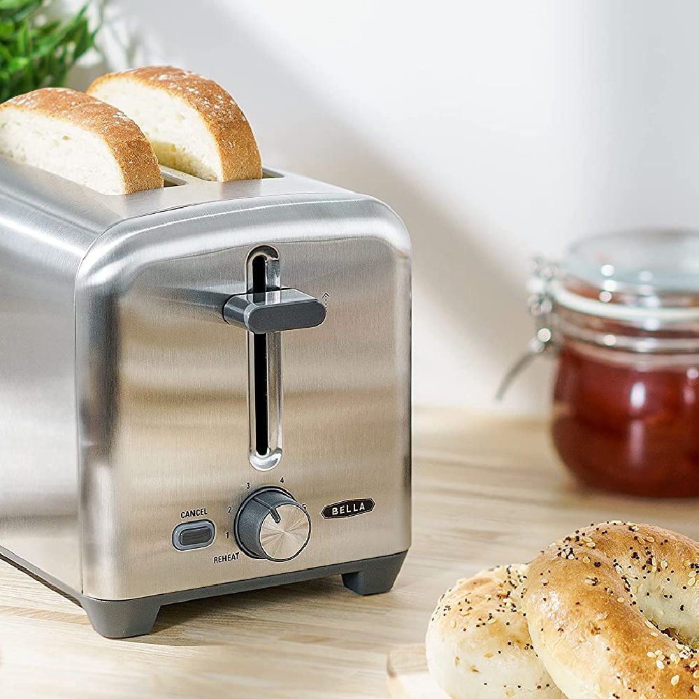 This Bella 2 slice compact toaster also features reheat and cancel buttons for simple operation. It comes with auto-jam and auto-shut off features for safety.