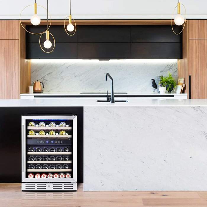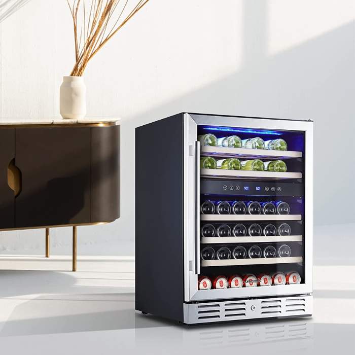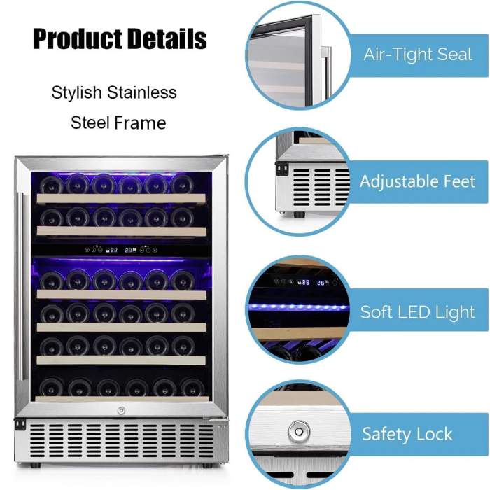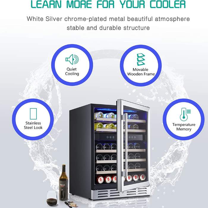 - Construction: Make sure the wine cooler is built with quality materials such as 304 grade stainless steel and a full-extension dual-pane gray glass door.