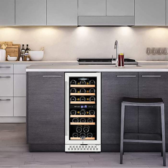 - Its advanced cooling system with fan circulation and low-vibration compressor ensures quick cooling and quiet operation, preserving the delicate flavors and aromas of your wines.