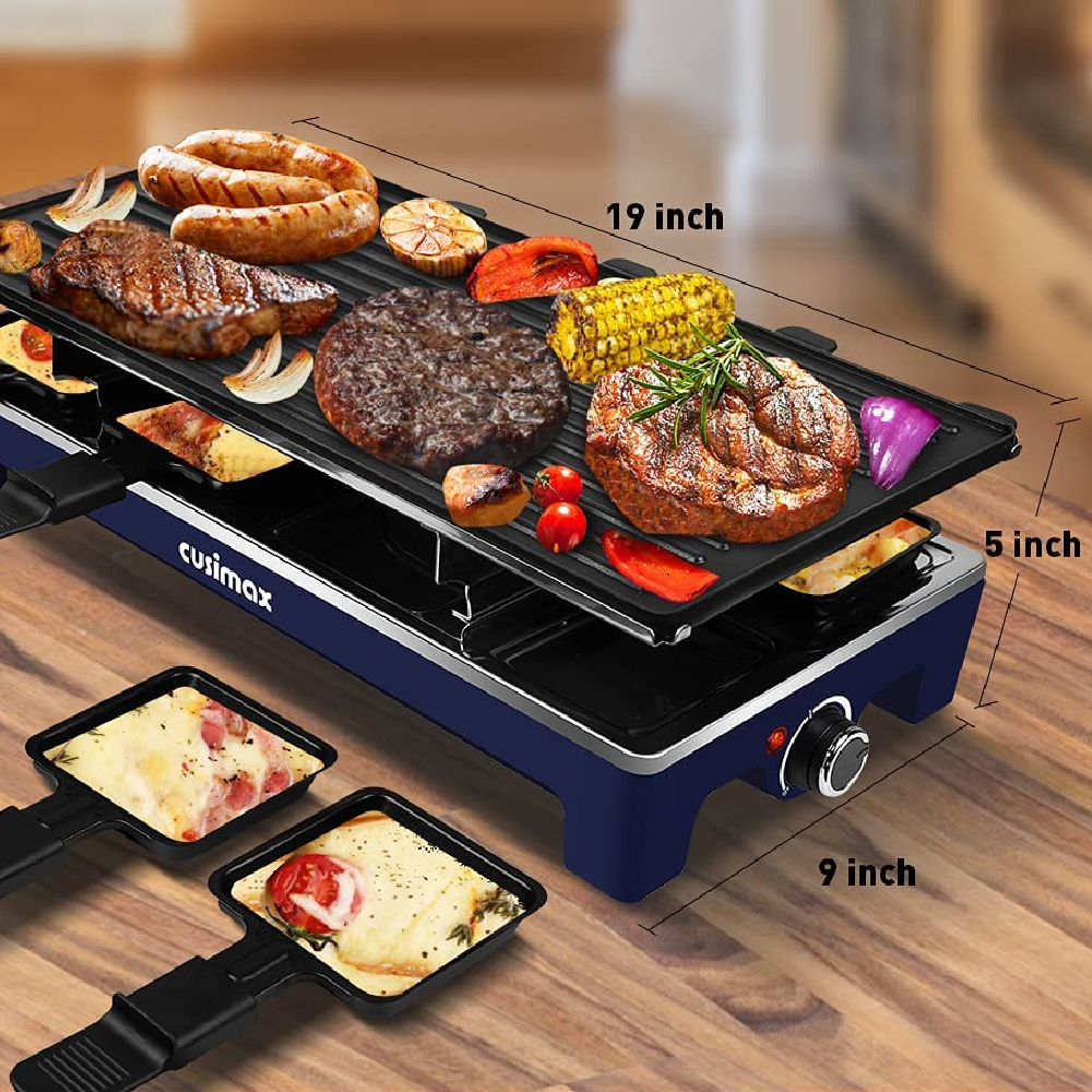 The adjustable heating control ensures that you can cook whatever you like perfectly. A serious candidate to be voted one of the "best electric grills". So don't miss out on the CUSIMAX Raclette Grill, the electric grill with a Swiss twist!