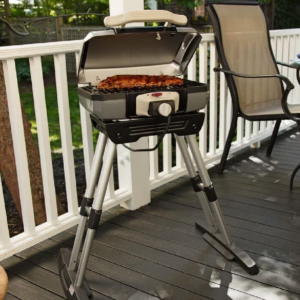 Cuisinart is a brand that has rightfully earned its reputation for classy kitchenware. This sleek and stylish grill plugs into any standard electric outlet, so you can take it anywhere. The stable 3-position stand both sets up and packs away in seconds, making it a breeze to use.