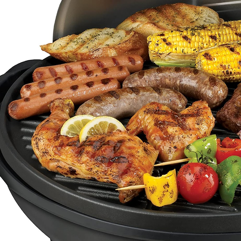 The George Foreman brand has built a reputation for reliability and versatility for outdoor cooking. This amazing grill will further cement their reputation for designing a versatile, great looking indoor outdoor electric grill.