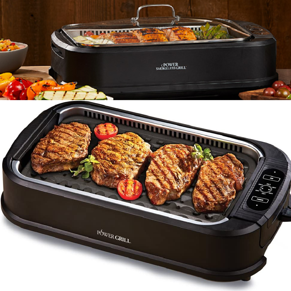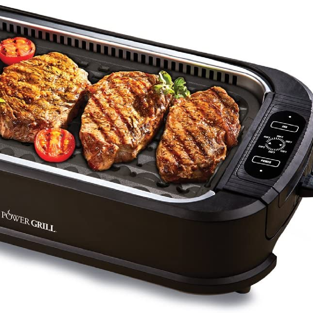 With interchangeable plates, it's in fact a grill and griddle combo. It includes a built-in smoke extracting fan to eliminate almost all hot smoky air, while preserving a light smoky flavor.