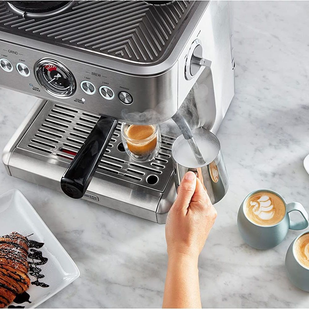 The Smeg Espresso Machine Black also comes with an optional water filter, making sure your coffee is always as fresh as can be. Note: this affordable espresso machine in this price range doesn't feature a grinder.