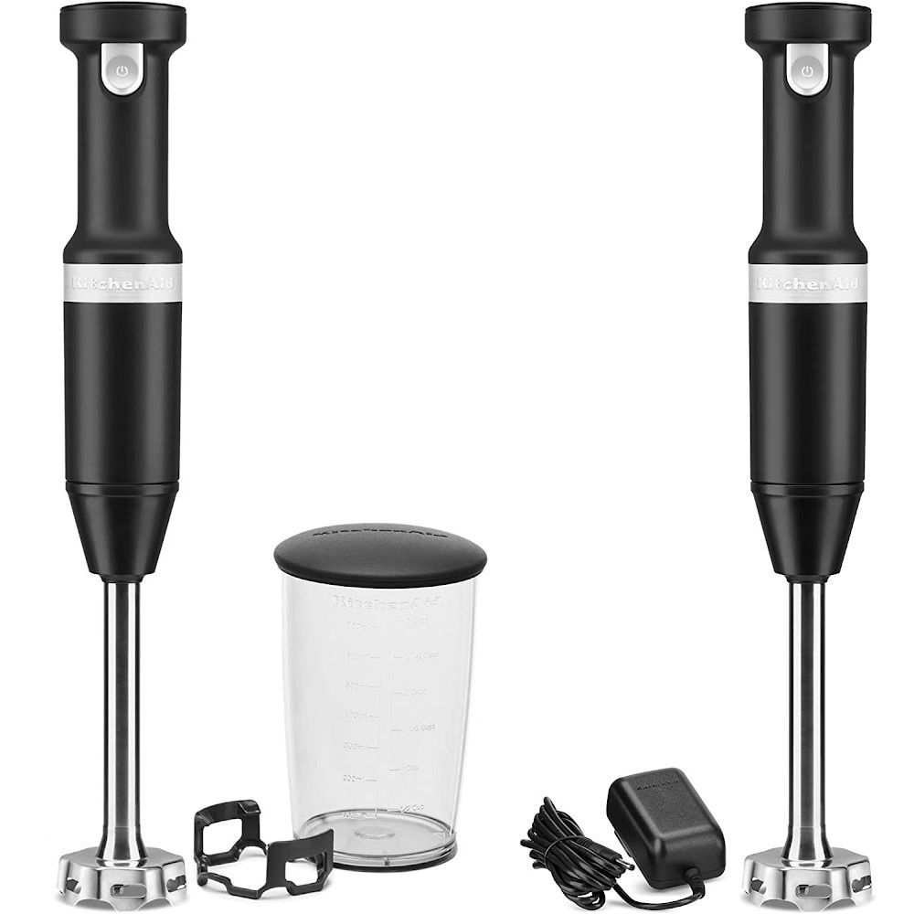 - The KitchenAid Cordless Hand Blender is another great option with 500 watts of power. It has a ergonomic design that makes it comfortable to hold, and it comes with a storage case to keep all the blender attachments organized.