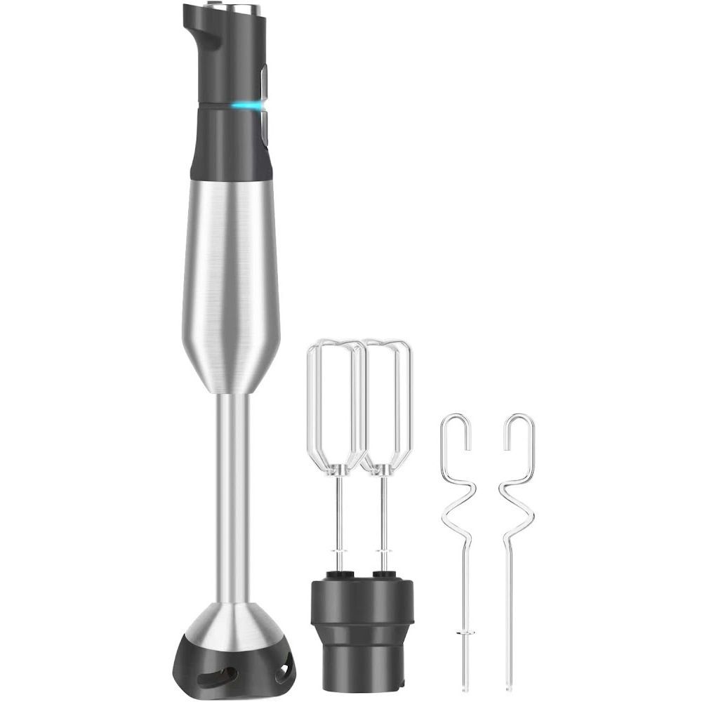 The separate Turbo Button blasts ice faster and better, while the included egg beater and dough hooks make this immersion blender an all-in-one kitchen powerhouse. This stick blender comes with a five-year warranty and fast customer support, so you can buy with confidence.