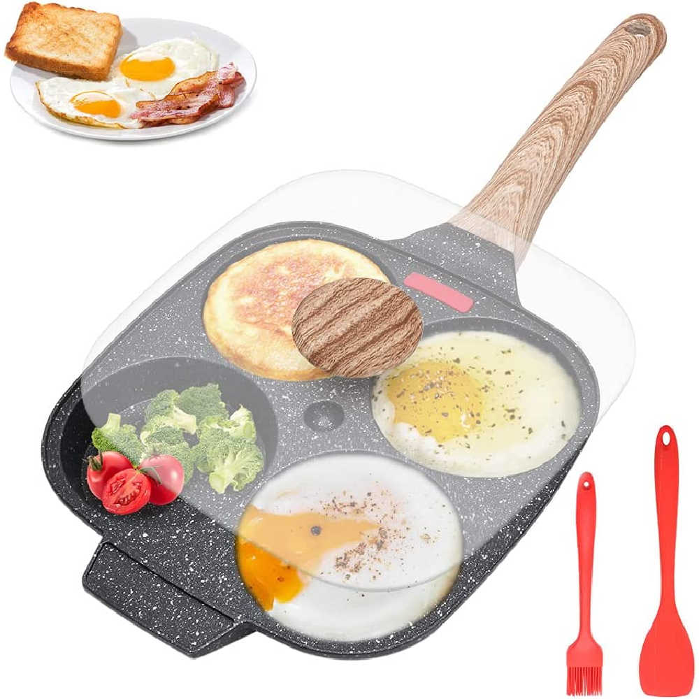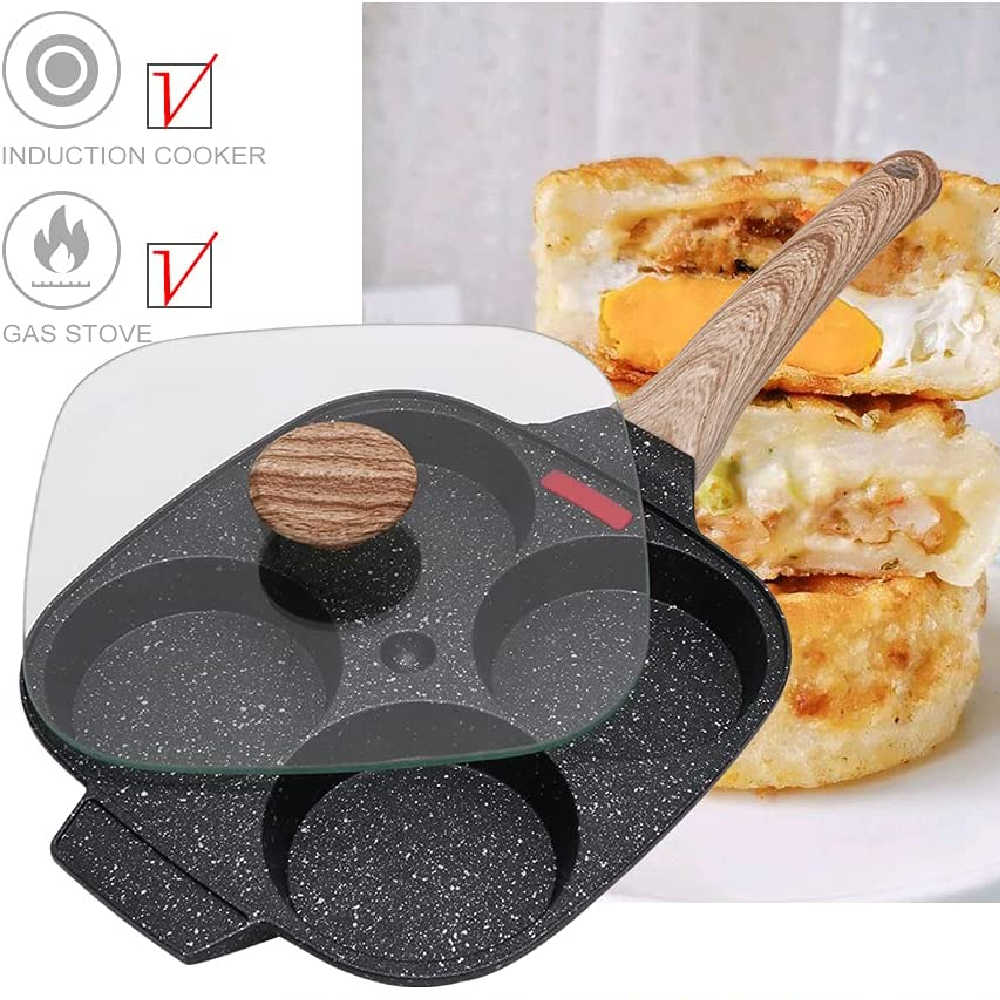 In the world of egg pans, this is an outlier. This unique four hole quality pan is perfect for cooking and flipping omelets, and egg dishes. But it's more than an egg pan: fried eggs, sure. But it's also fit for frying bacon, burgers and pancakes.