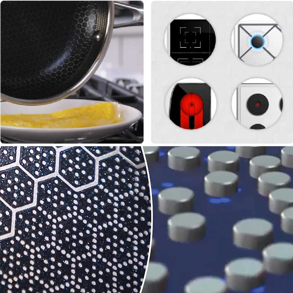 This pan is made with high-quality materials and construction, so you know it will last. The unique hexagon design is created through a laser etching process and provides both a stainless steel base and nonstick surface.