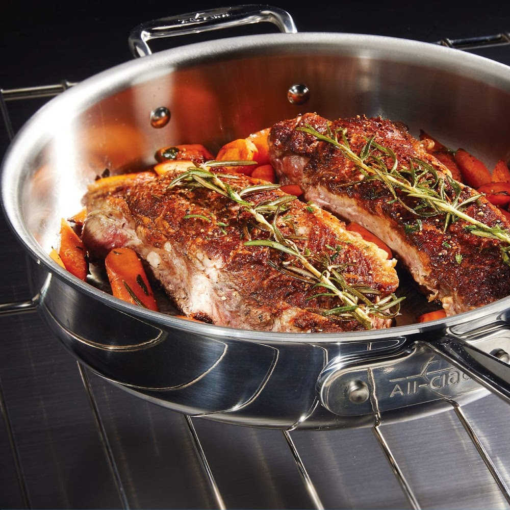 To keep your All-Clad D3 pieces looking like new, we recommend washing your cookware by hand with mild detergent and a sponge.
