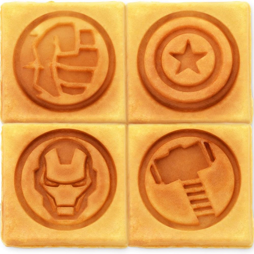 Just spritz with a little cooking spray and watch as the waffle slides out, ready to be devoured. Captain America, Thor, Iron Man, and Hulk are ready to save the planet!