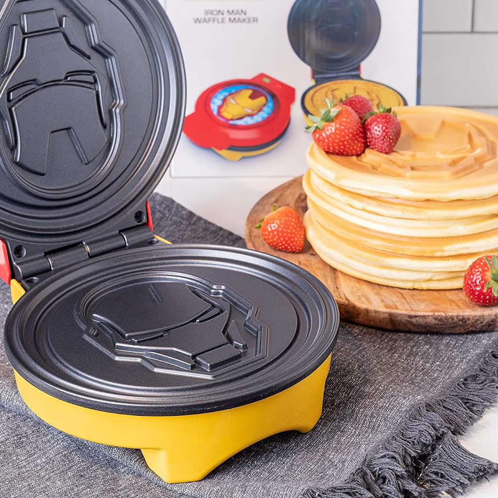 This awesome waffle maker features detailed, die-cast aluminum plates that create a perfect imprint of Iron Man's helmet in every single waffle.