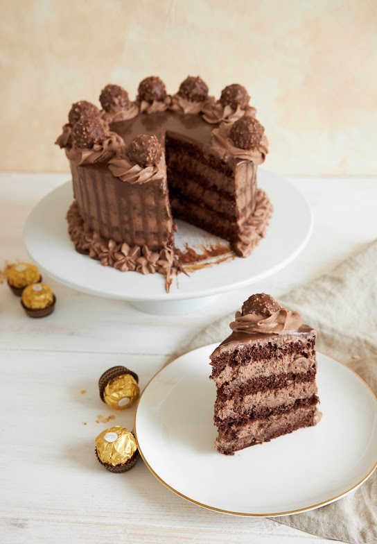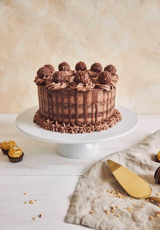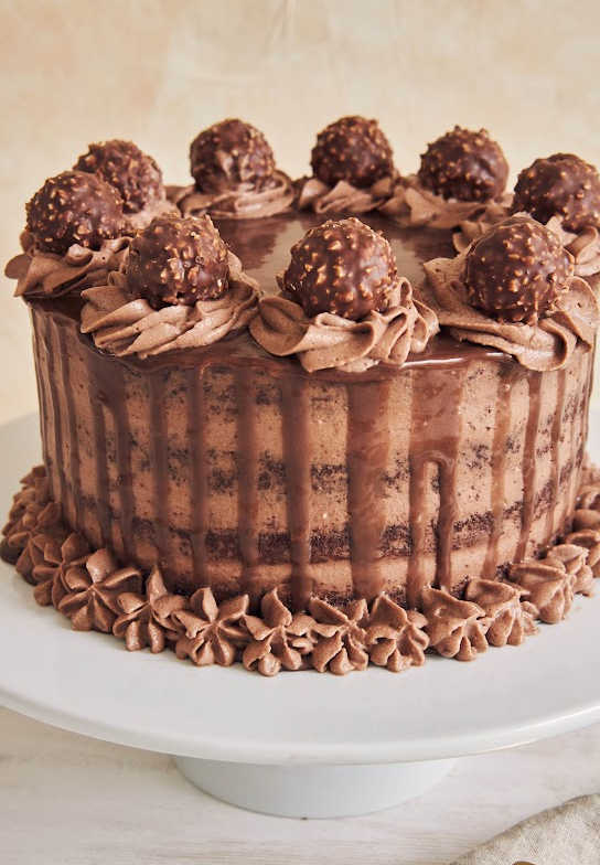 If you're going for a classic look, then this is the way to go. Start with a basic chocolate cake recipe and add some vanilla extract or other flavorings of your choice. Then top off the cake with fluffy vanilla buttercream frosting and sprinkle some Ferrero Rocher chocolates on top for added pizzazz.