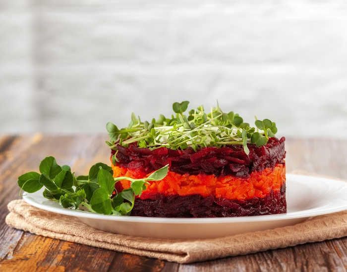 - Garnish with some microgreens on top of the salad.