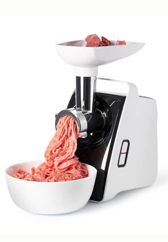 A meat grinder is a kitchen appliance designed to grind meat into various sizes, from fine to coarse. It has various types of blade attachments depending on the user's needs and what meat recipe is going to be made.