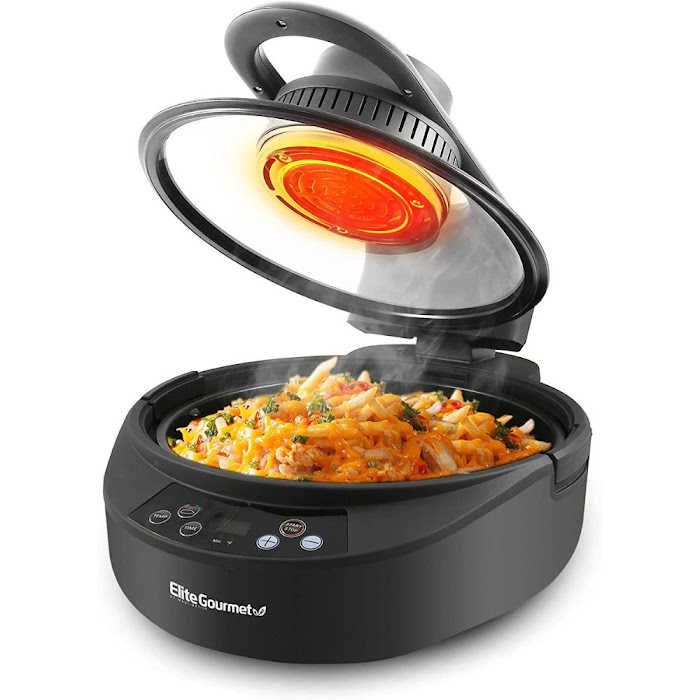 - The Elite Gourmet air fryer multi cooker's elegant appearance is easily maintained with a damp cloth.