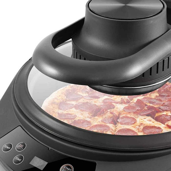 Because it has a halogen-based heating element, this product will prepare your food by lighting it up. They do, however, use the same technology as an air fryer: a fan blows hot air from the halogen heating element all around the cooking chamber. In that sense it works like a convection oven.