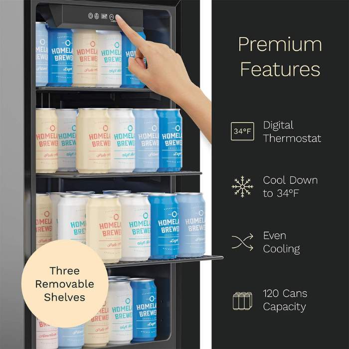The temperature control can be easily adjusted to cool to 34°F, and the digital display allows for quick and accurate monitoring.