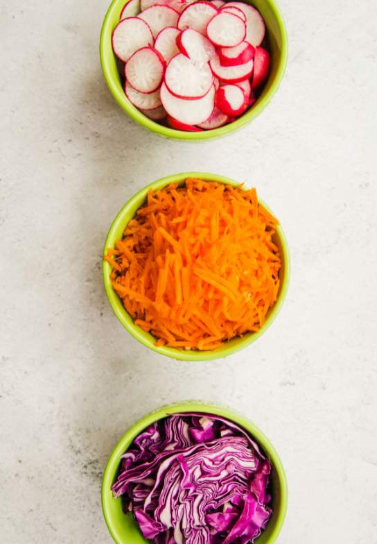 - Grating involves cutting or shredding the vegetables into thin uneven strips using a box grater or a hand grater.