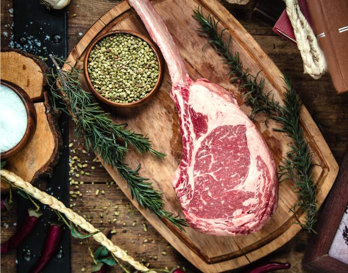 - Rub a ribeye steak with minced garlic, chopped herbs, salt, and pepper.