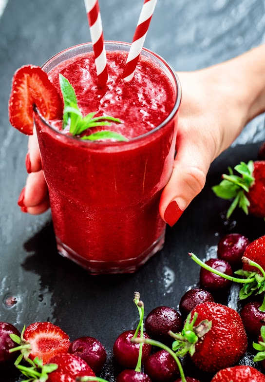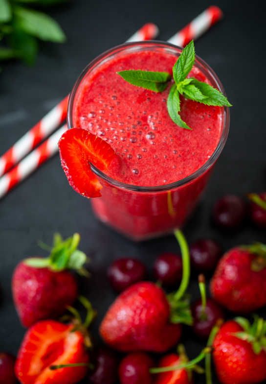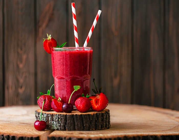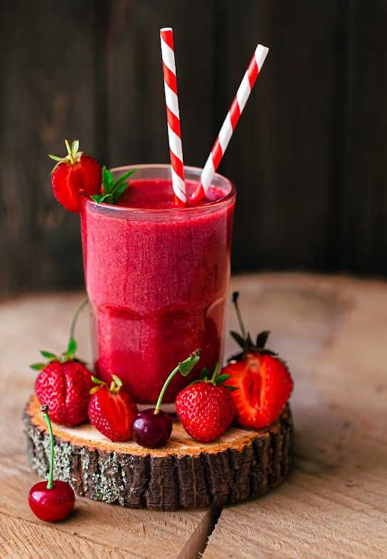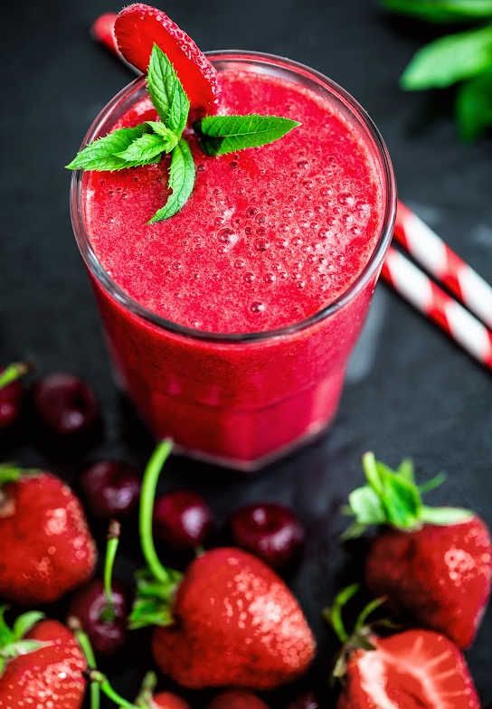 - Combine the cherry juice, strawberries, and honey in a blender and blend until smooth.