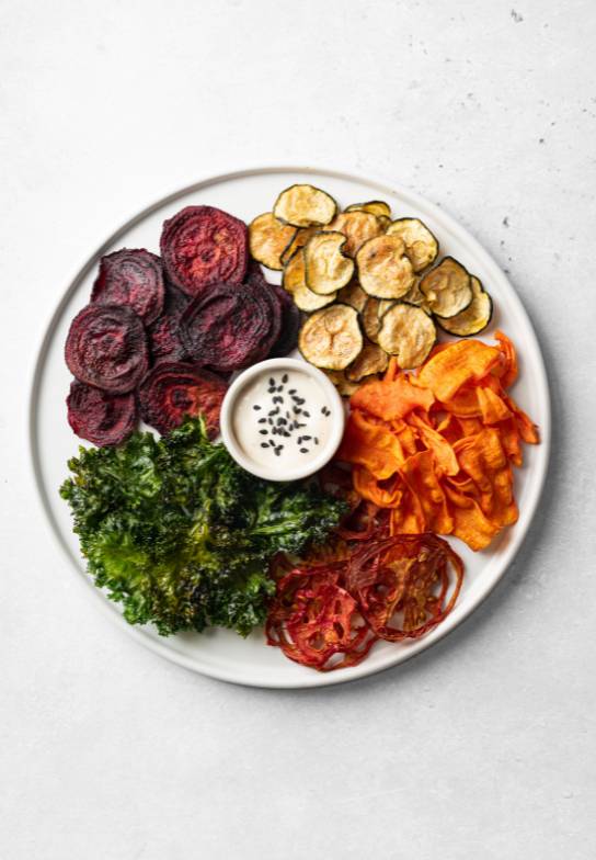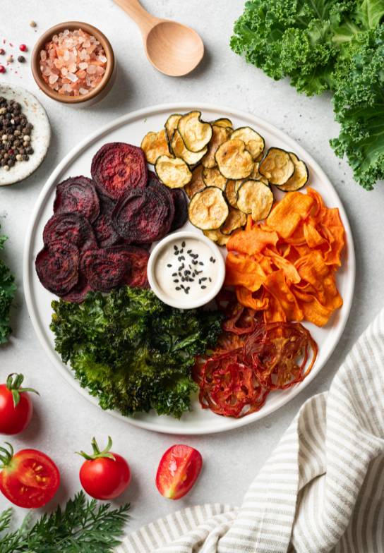 - For vegetable chips, air frying them for 8-12 minutes or dehydrating them for 4-6 hours should be enough.