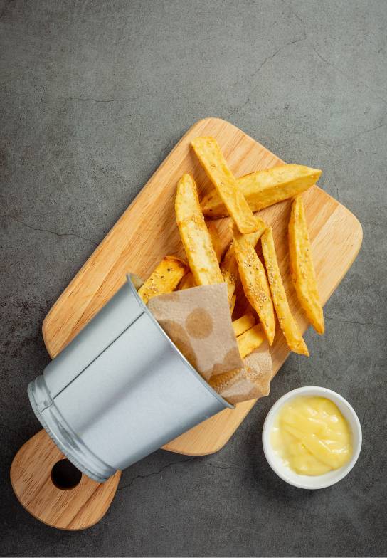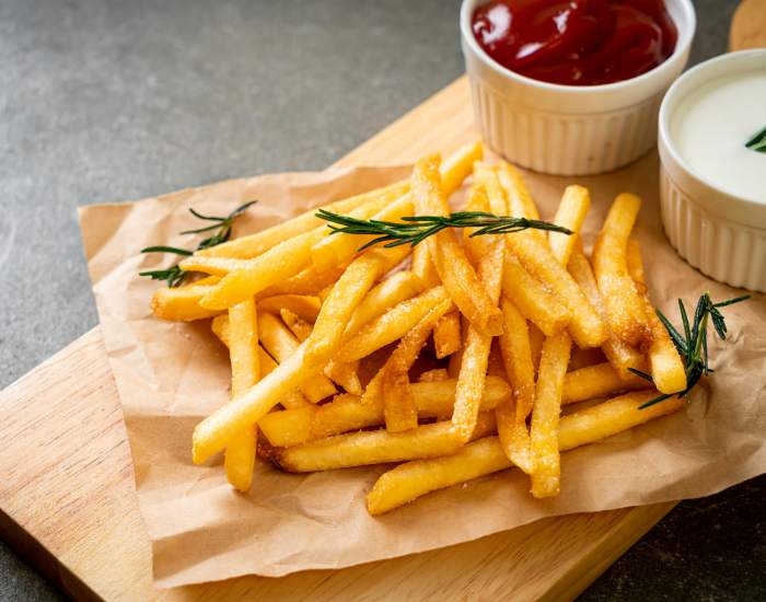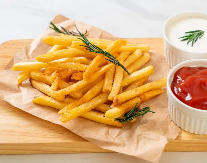 - For a crispier result, coat a thin layer of cornstarch on fries before cooking.
