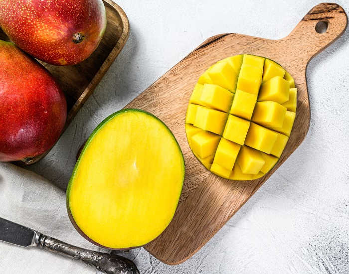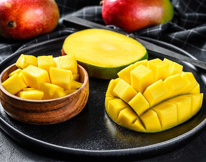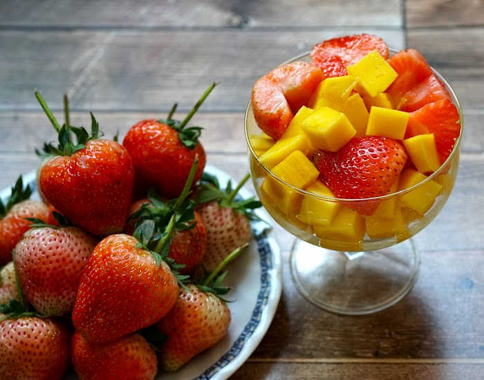 Mango pairs well with other sweet fruits like strawberries, pineapple, and banana. For a more exotic twist, mango also goes great with coconut or lychee!