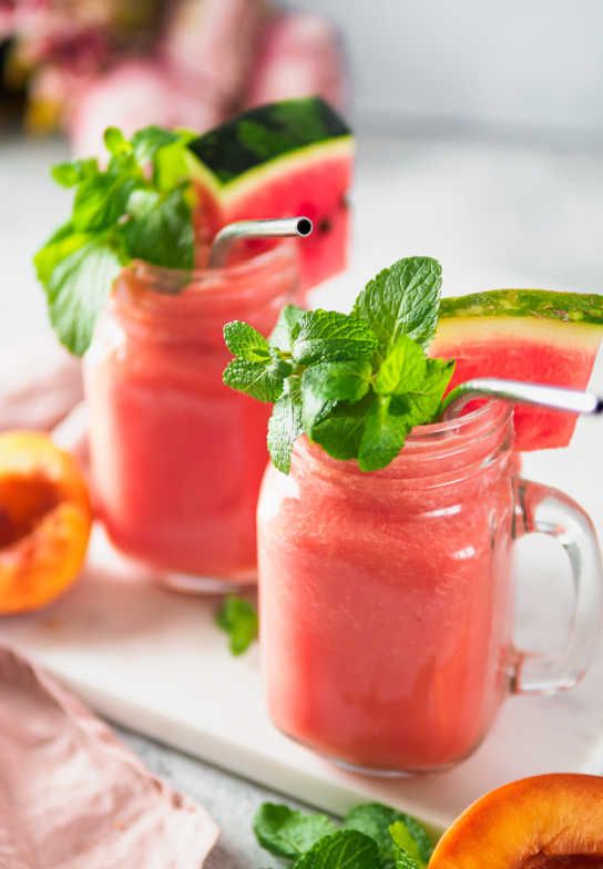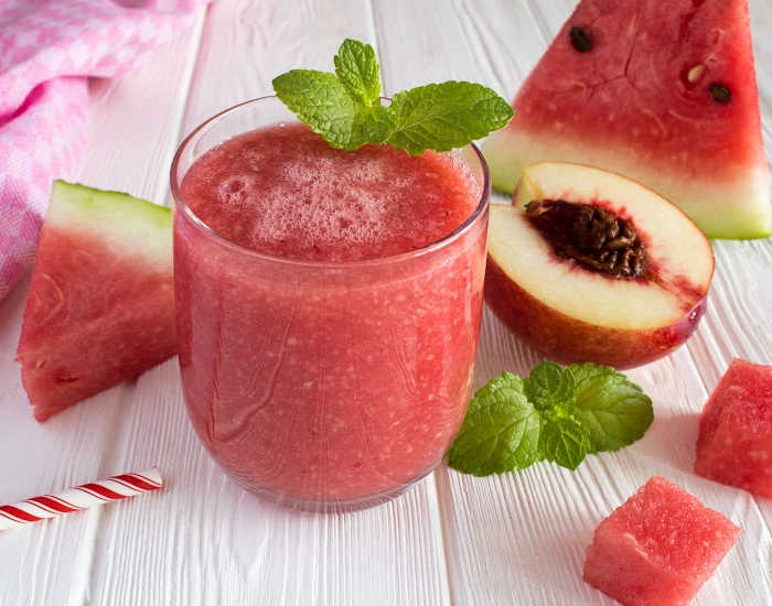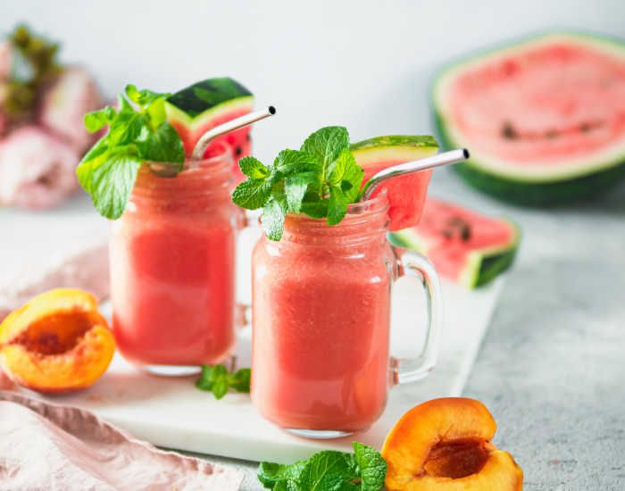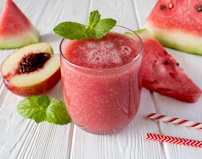 For a tasty summer drink, try this watermelon-peach combo for an extra juicy treat.