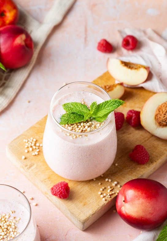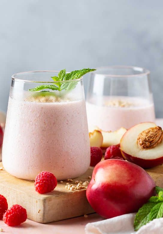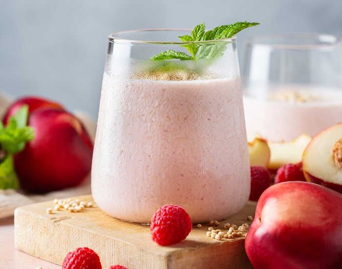 For a fruity twist on your peach drink, add in some raspberries for an extra tart.