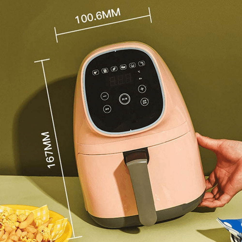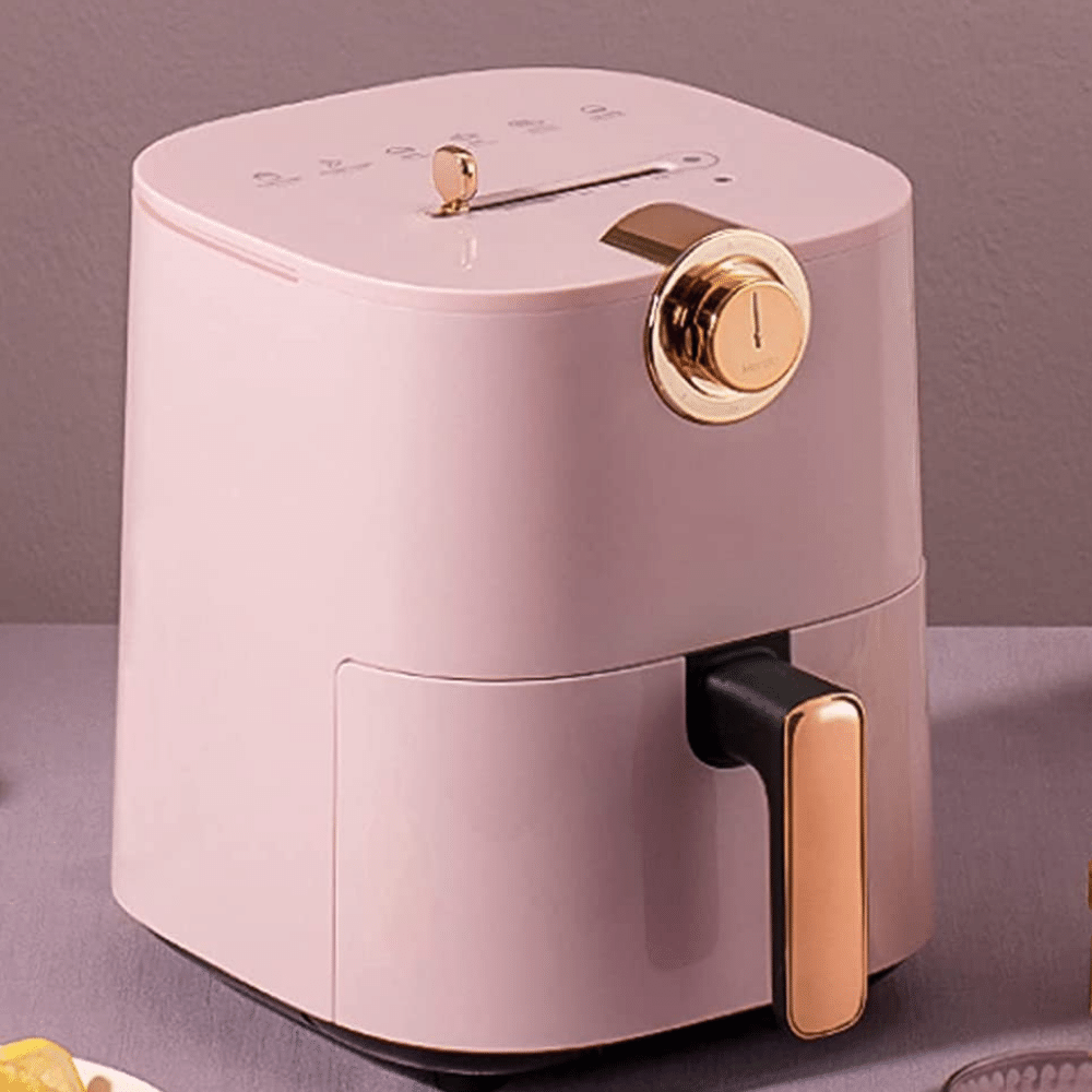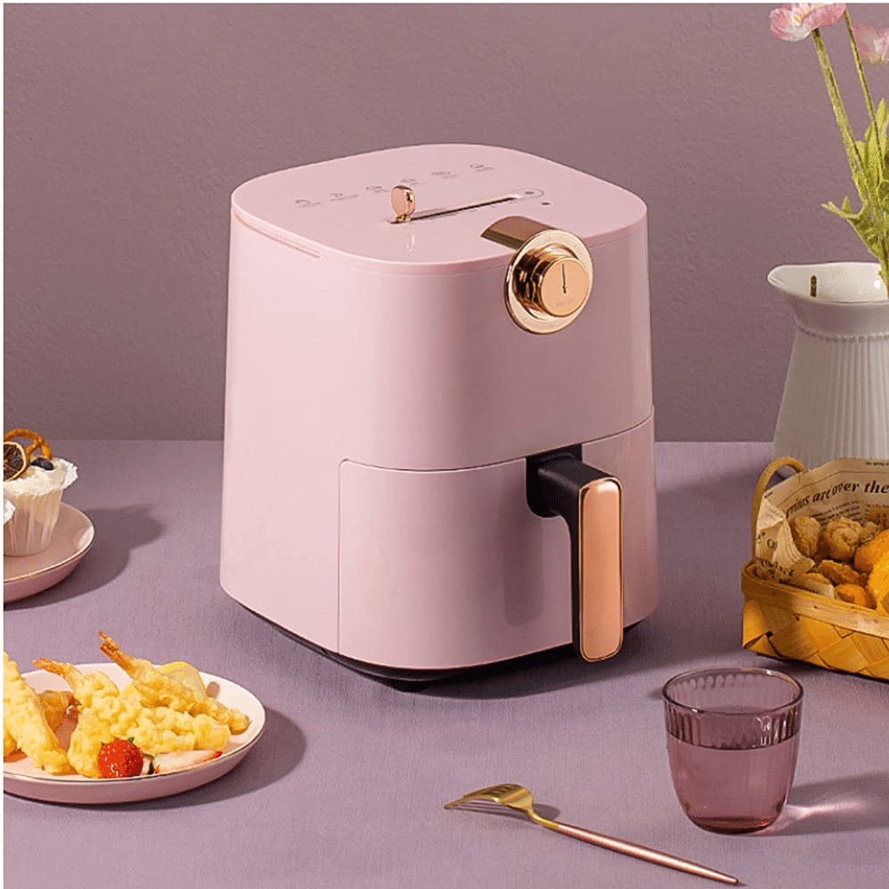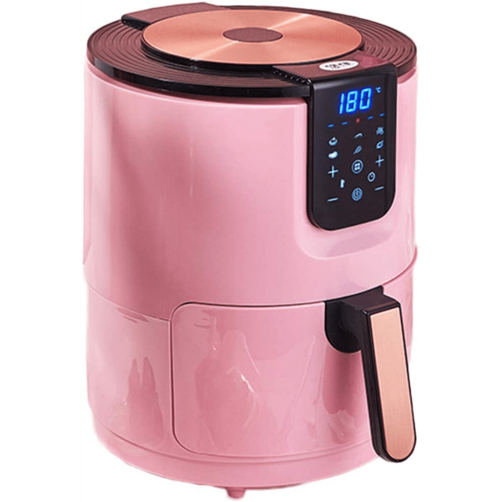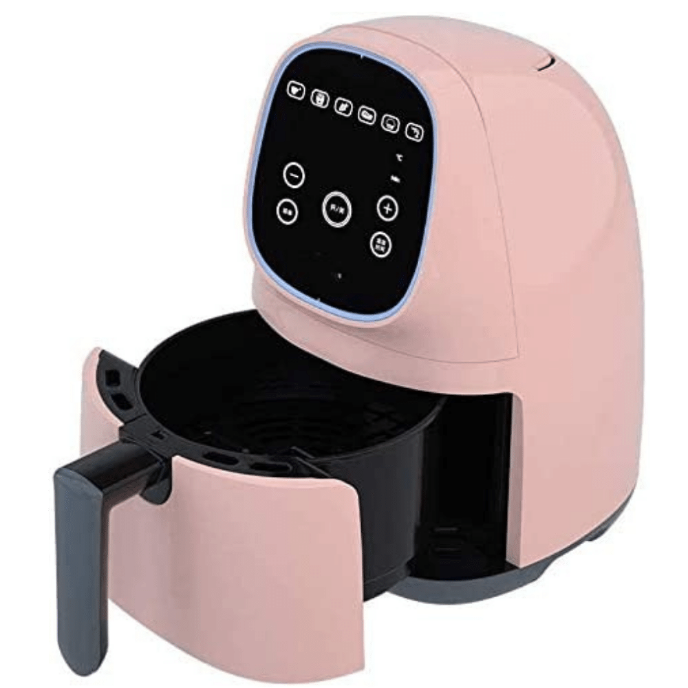 This mini air fryer has a unique look, with its sleek pink modern design. The small size is perfect for those who want to save space in their kitchen.