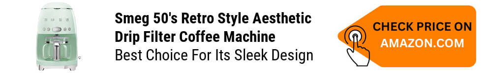 This Smeg model has a 60-minute warming plate and a programmable automatic start. This coffee maker is the perfect choice for those who appreciate classic design and want to enjoy a delicious cup of morning coffee at home, at any time.