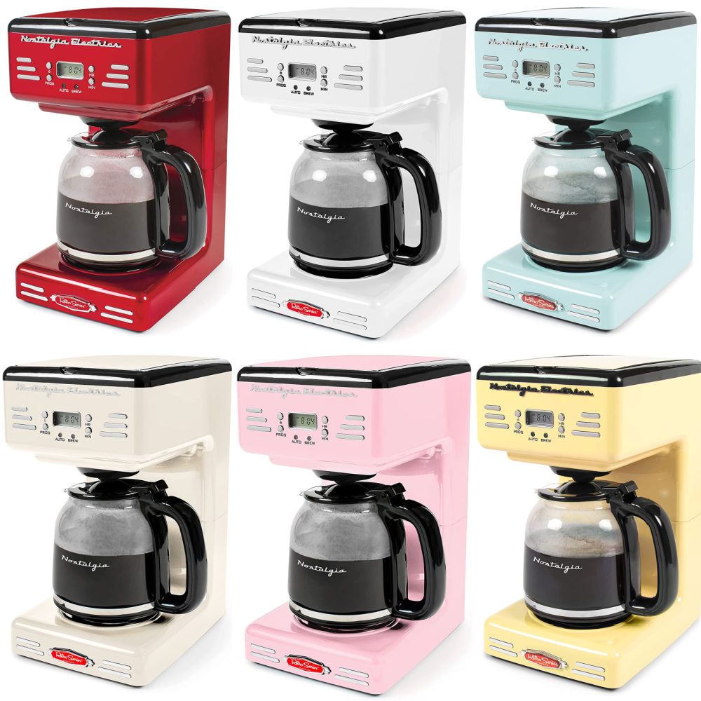 Start your day the right way with delicious, freshly brewed coffee from the Nostalgia Retro 12-Cup Programmable Coffee Maker.