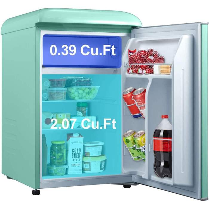 It depends on the model you choose. Typically, retro mini fridges are available in 1.5 and 3.5 cubic feet capacities. The former is perfect for single-person households and small families, while the latter can store sufficient food items for a larger family.